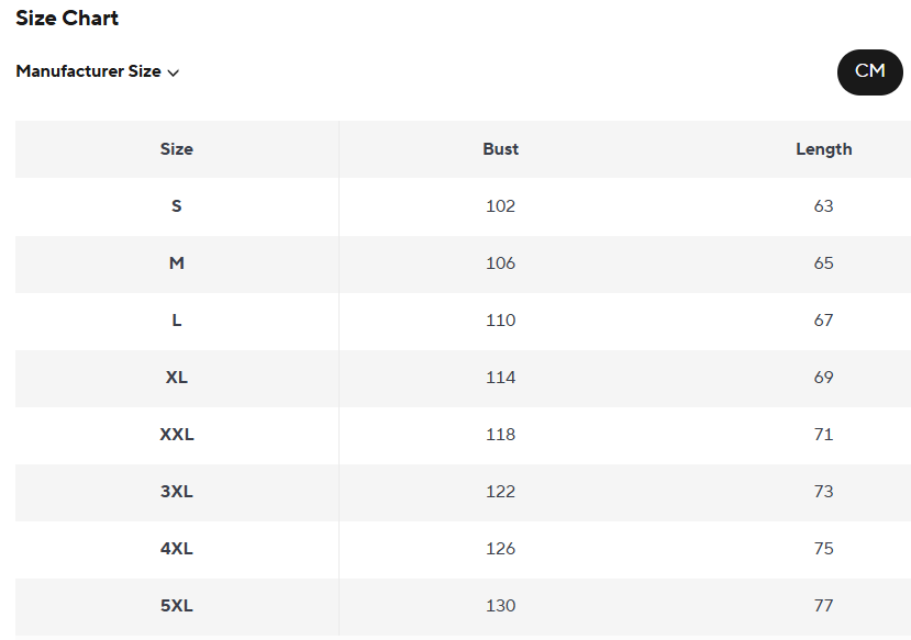 • 5XL – veste equivalente a XXGG